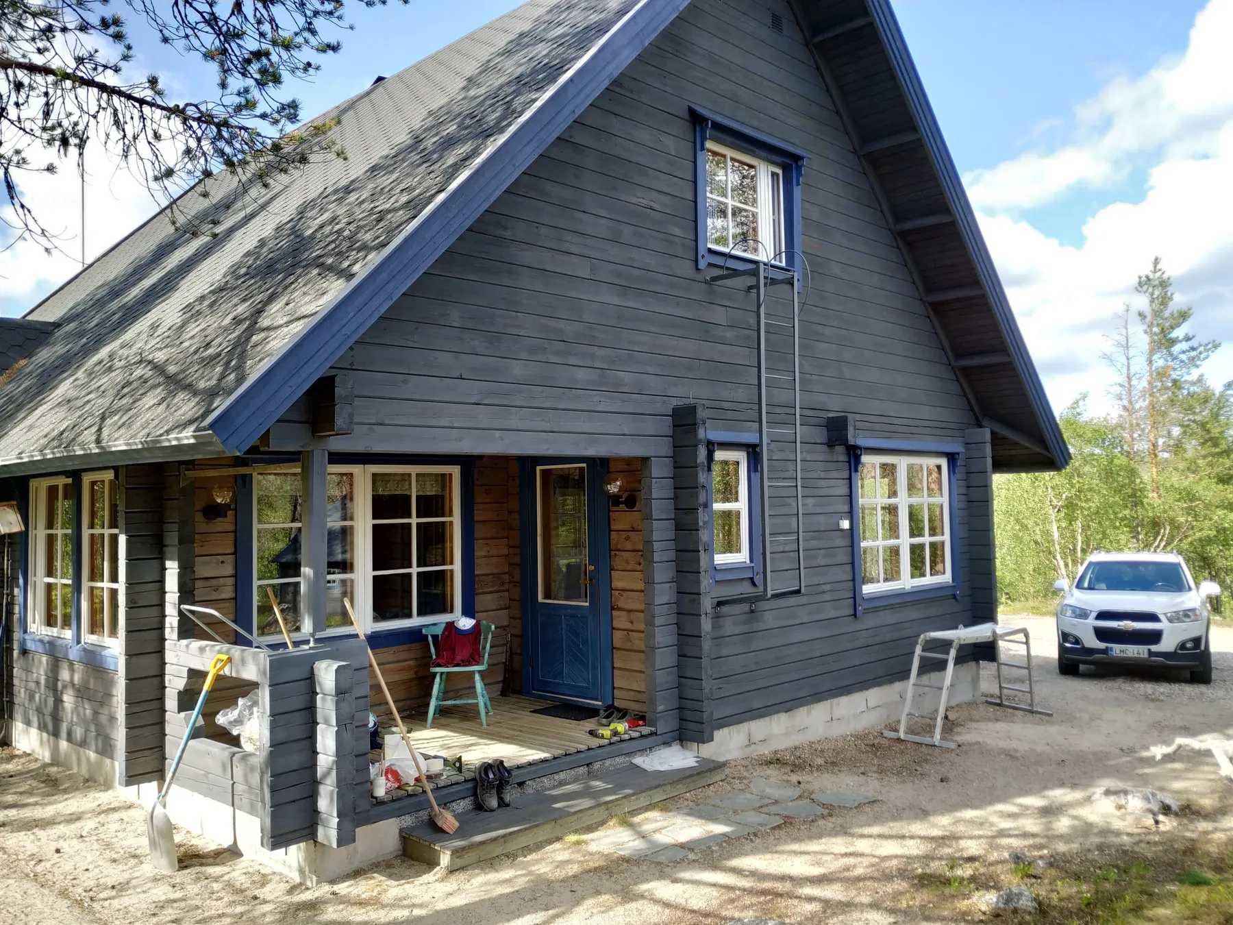 Das Blockhaus/die Villa wurde 1993 von Honkarakenne nach eigenen Plänen als Zweitwohnsitz für eine Familie in Lappland erbaut. Das Bauvorhaben wurde als Gesellschaft mit beschränkter Haftung (GmbH) realisiert, die heute als Immobilien-Gemeinschaftsgesellschaft mit vier Gesellschaftern, Tasoma Oy, firmiert. Das Grundstück umfasst 5000 m². Zum Anwesen gehören ein separates, ca. 12 m² großes Lagergebäude (Fertigstellung 2001) für Brennholz und Vorräte sowie ein 10 m² großer Grill (Fertigstellung 2008) mit Ausstattung. Die Villa befindet sich im Dorf Hetta, im Zentrum der Gemeinde Enontekiö, neben Luomaanvaara, mit Blick nach Süden auf Pyhäkero hinter dem Ounasjärvi-See. Die Adresse lautet Ruijantie 140, 99400 Enontekiö. Die Lage ist ruhig an der Straße nach Kautokeino, die nach Norwegen führt, weniger als 100 Meter von der Straße entfernt. Hetta ist ein Ort mit vielfältigen Serviceangeboten. Dort finden Sie unter anderem: einen K-Markt, eine Alko-Filiale, eine Apotheke, eine OP-Bank, ein Schulzentrum, ein Naturzentrum und ein Hotel. Im Winter laden die Skipisten von Jyppyrä – besonders geeignet für Kinder – und ein gut ausgebautes Loipennetz sowie der zweite Startpunkt des Hetta-Pallas-Wanderwegs zur Freizeitgestaltung ein. In den nahegelegenen Seen und verschiedenen Flüssen Lapplands bieten sich gute Angelmöglichkeiten. Im Herbst erstrahlt die prächtige Landschaft in satten Farben. Die Immobilie wird inklusive Inventar direkt von den Eigentümern verkauft.