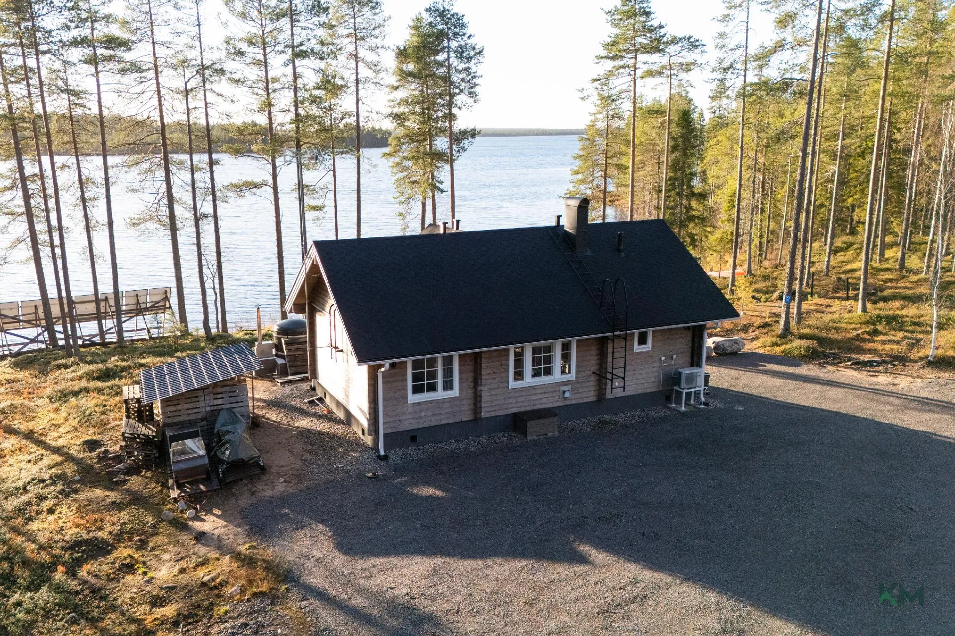 Eine relativ neue Blockvilla auf einem großen Grundstück am Ufer des Simojärvi-Sees